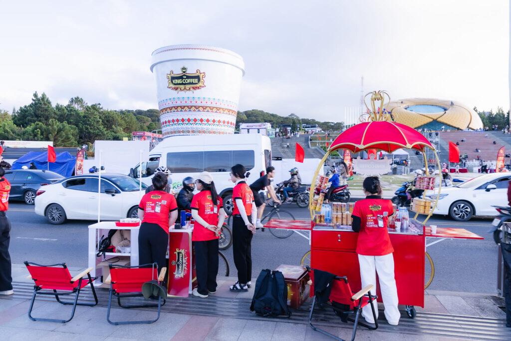 Điểm làm nên sức hút khác biệt của công trình nằm ở chỗ: bên trong chiếc ly là một quán cà phê vận hành thực tế. Không chỉ phục vụ đồ uống tại chỗ, đây còn là điểm dừng chân lý tưởng cho khách tham quan. Du khách có thể ngồi lại nghỉ ngơi, trò chuyện và được gợi ý lựa chọn cà phê theo khẩu vị cũng như cách thưởng thức, để cảm nhận rõ hơn hương – vị trong bầu không khí lễ hội.