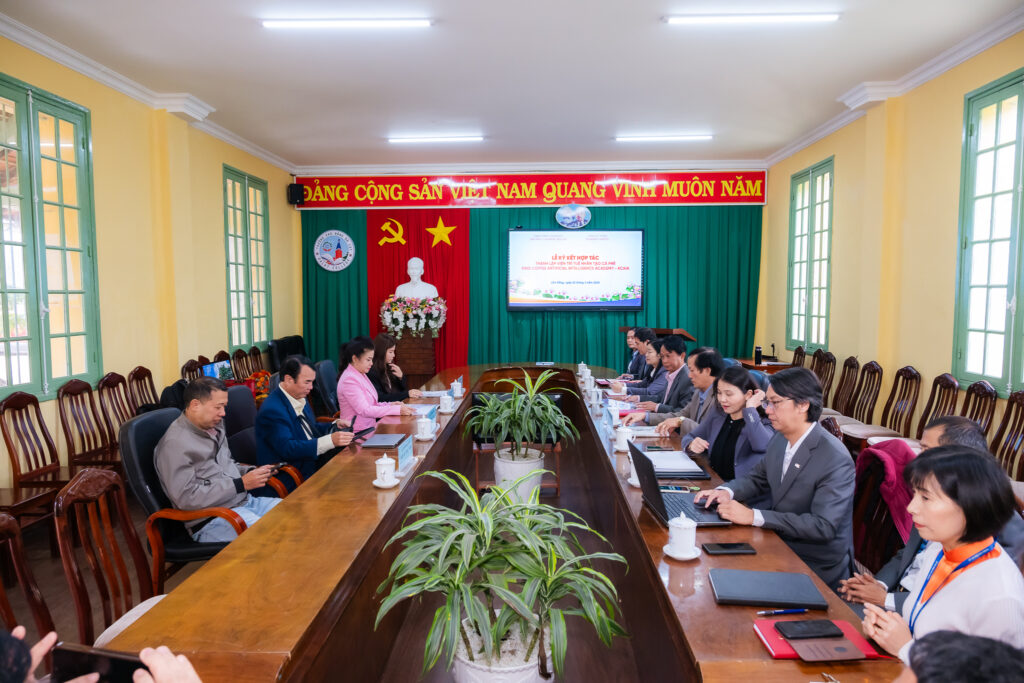 Buổi lễ diễn ra trong không khí trang trọng, đánh dấu bước khởi đầu quan trọng trong mối quan hệ hợp tác giữa doanh nghiệp và cơ sở giáo dục nghề nghiệp. Đây là tiền đề cho việc triển khai các hoạt động đào tạo, nghiên cứu và chuyển giao công nghệ ứng dụng trí tuệ nhân tạo (AI) trong lĩnh vực cà phê và nông nghiệp bền vững.